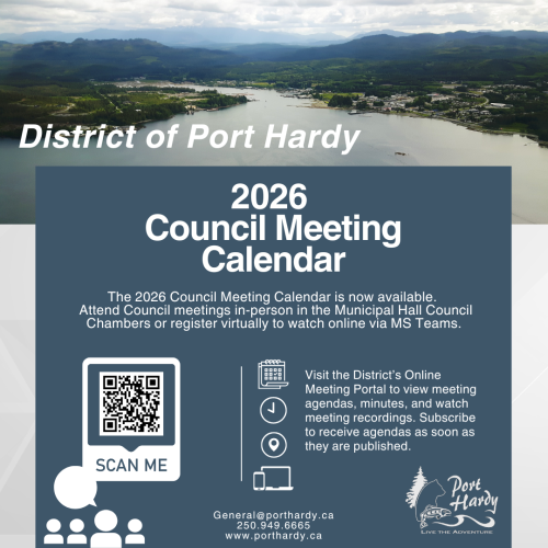 Members of the public are welcome to attend open meetings of Council and may address Council if arrangements to do so have been made in advance. Visit the District’s Online Meeting Portal to view agendas, minutes, and recordings of regular meetings. Register online to attend an upcoming meeting virtually via MS Teams.